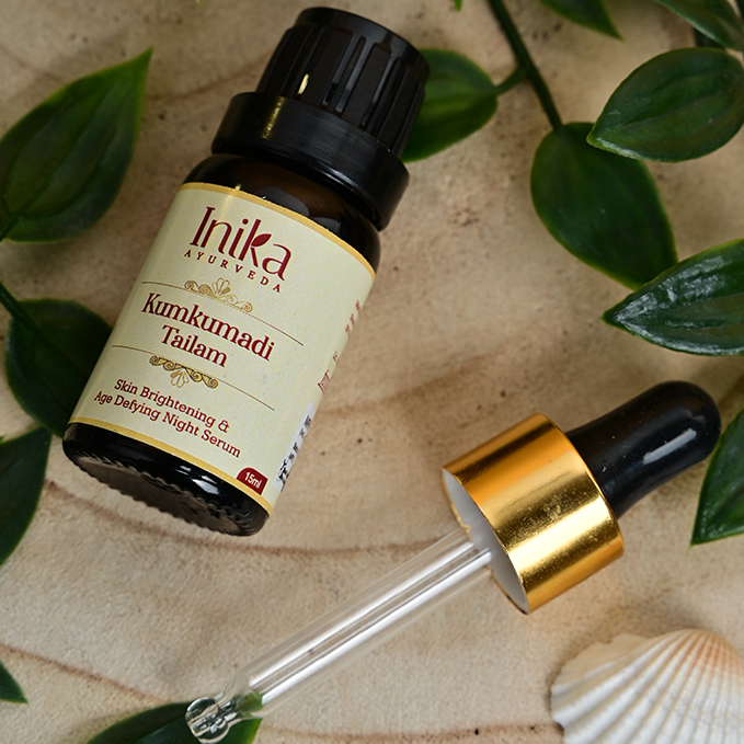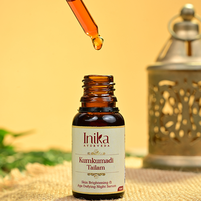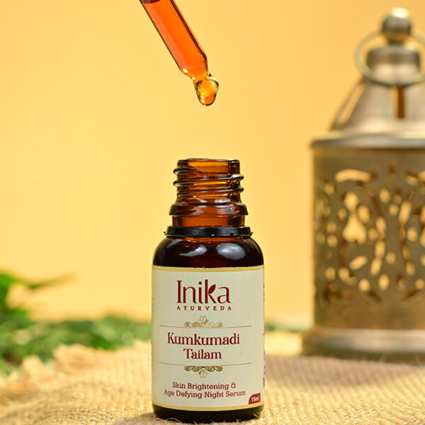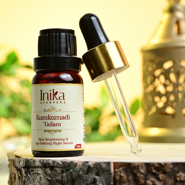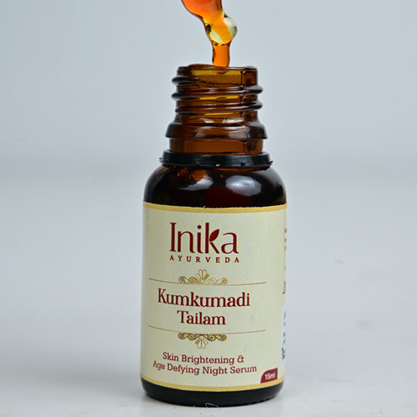 Serum Kumkumadi tailam is based on ancient preparation which helps in the prevention of wrinkles. It makes skin radiant and beautiful. By daily application of this oil, the skin appears firmer and more youthful.
